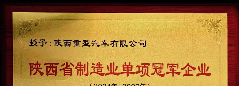 近日,经过严格程序认定,陕西重型汽车有限公司被授予“陕西省制造业单项冠军企业”荣誉,这是对陕汽长期专注商用车领域深耕细作并持续创新的充分肯定。