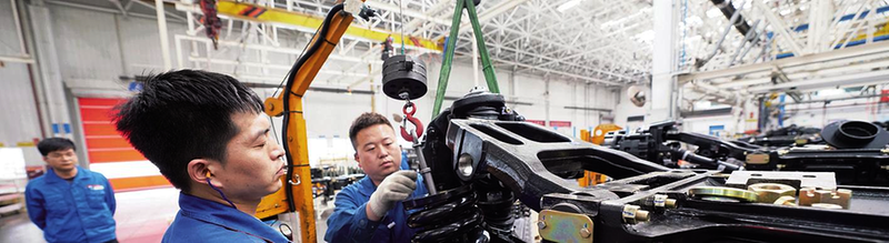 员工正在装调车辆弹簧
