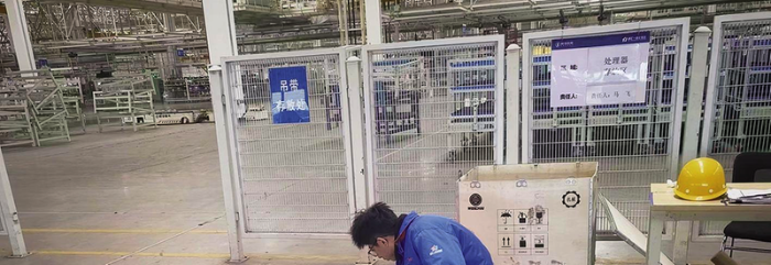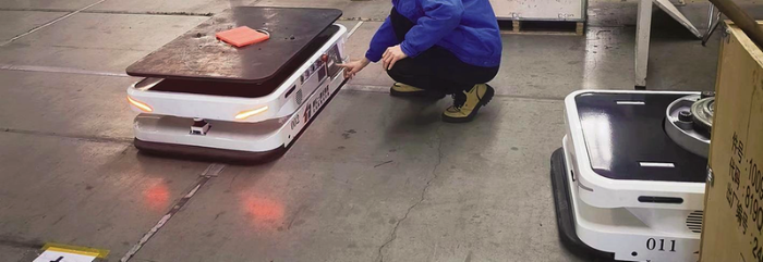 通汇物流员工协助供方在业务场景中进行AGV设备联调