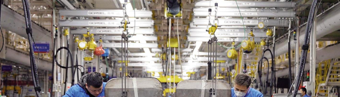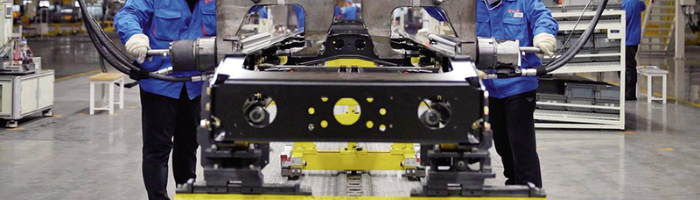 车架装配车间员工正在铆接作业